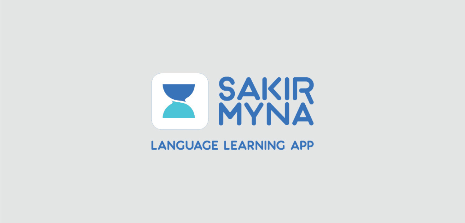 Language connects people and places, and learning a new language builds confidence in communication. The Sakir Myna language learning app identity uses speech bubble symbols and an hourglass motif to help users recognize the solution the application provides.